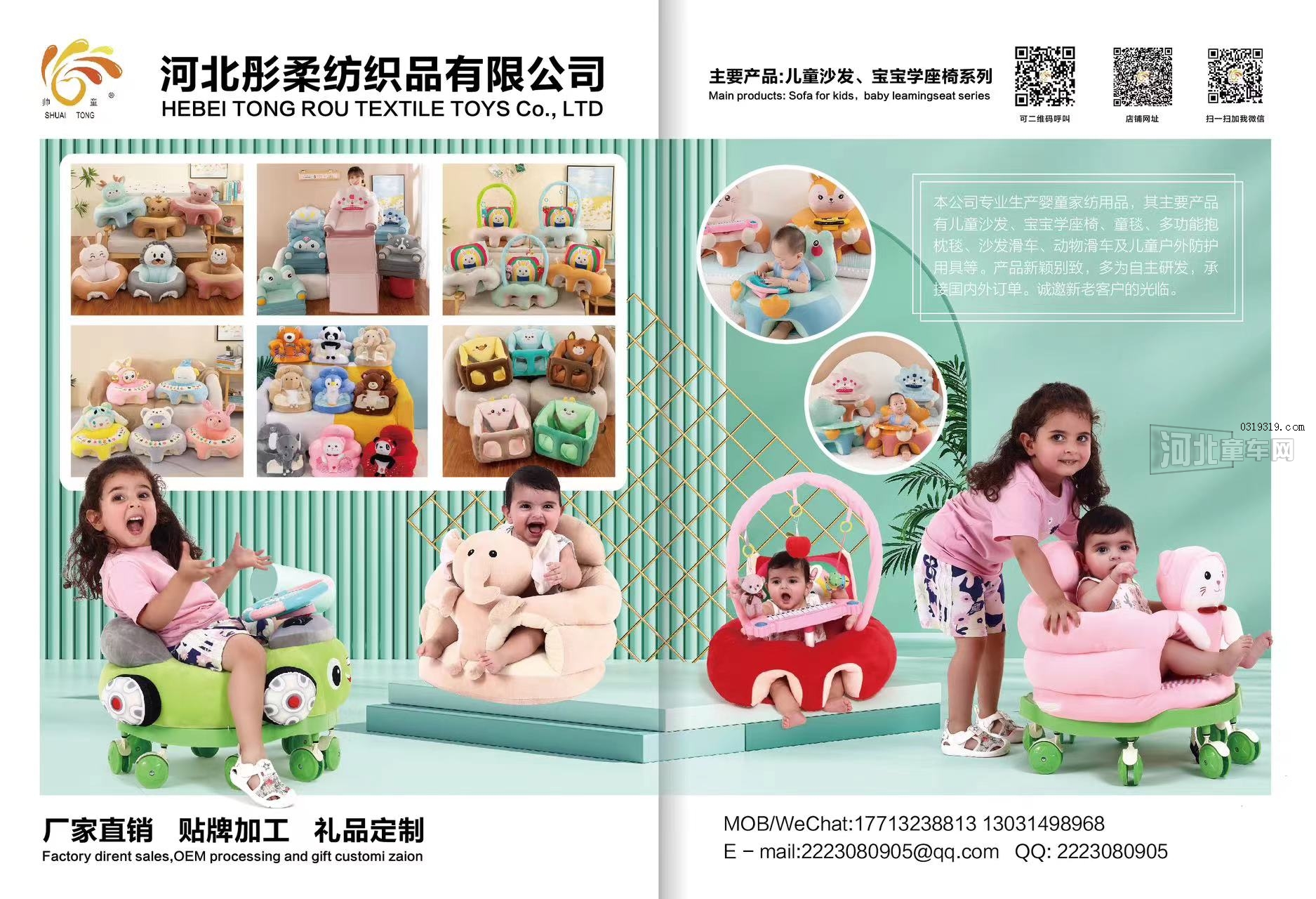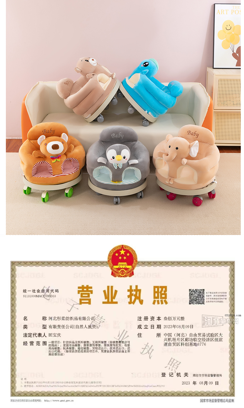 婴童智能 河北彤柔纺织品有限公司-滑行学步车-沙发,本公司为专业生产婴童家纺家居产品,电话微信: 17713238813 .... 17713238823 ... 18631610029 ....我们主要产品有儿童沙发,宝宝学座椅,沙发滑车及各种空调被抱枕毯等,生产基地位于河北雄安新区工业园,江苏叠石桥及义乌商贸城设有发货库房,主要承接国内批发商和外贸定单,