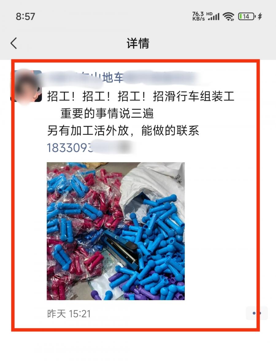 招工!招工!招工!招滑行车组装工 ​重要的事情说三遍 另有加工活外放-邢台平乡河古庙求职招聘,车间出租大全,河古庙外放活